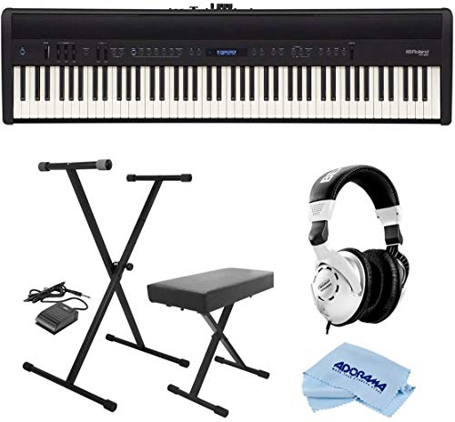 - KIT INCLUDES: Roland FP-60 88 Key Digital Piano - AC Adaptor - Power Cord - Music Rest - Damper Pedal - Owner's Manual - Leaflet "USING THE UNIT SAFELY" - Roland 1 Year Parts & 90 Day Labor Warranty - On-Stage KPK6520 Keyboard Stand/Bench Pack with Sustain Pedal - Behringer HPS3000 High-Performance Studio Headphones - MicroFiber Cloth