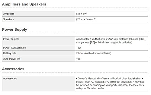 - Keyboard Only - AA Batteries or Yamaha PA130 Power Adapter required (sold separately)